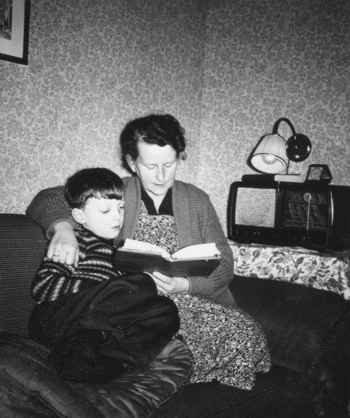 Meine Großmama hat mir abends, wenn die Aufgaben erledigt waren, viele Geschichten aus ihrer Kindheit in Schlesien erzählt. Sie konnte sehr lebendig erzählen und meine Urfamilie und die schlesische Heimat sind mir so auch ein wenig vertraut geworden. Sie hat mir auch viel vorgelesen. Da wir in der Schule auch die Gemeindebücherei verwalteten und alle neuen Bücher zuerst bei uns landeten, war immer reichlich Lesestoff vorhanden. Bald war ich begierig, selbst lesen und auch schreiben zu können und bekam Privatunterricht bei Großmama. Da ich dann mit 5 Jahren schon lesen und schreiben konnte, wurde ich kurzerhand eingeschult. Unsere Schule war ein Zauberort, acht Volksschulklassen saßen dort in einem ziemlich schäbigen Raum auf harten Bänken. Mein Opa dirigierte mit großer Kunstfertigkeit und Autorität den Lernprozess, wie im Zirkus der Dompteur die Bestien, alles war in Bewegung und jede Klasse wurde parallel mit unterschiedlichen Aufgaben versorgt. Vorne leierte die erste Klasse das ABC, dahinter wurde geschrieben, dahinter gerechnet usw. und es gab kaum Störungen oder Leerlauf. Wir haben viele Streiche ausgeheckt, aber nie bei meinem Opa im Unterricht. Das lag zum einen daran, dass wir einen Ehrenkodex hatten, der besagte, wenn man was ausgefressen hatte und gefragt wurde, wer es gewesen war, dann hat man sich gemeldet, immer und ohne wenn und aber. Der zweite Punkt war, dass die gröberen Streiche bei den Buben mit der Weidenrute geahndet wurden, das variierte zwischen drei und fünf Schlägen. Diese Bestrafung verlief in einem festen Ritual. Man kam nach vorn, Opa holte die Gerte, hielt einem am Hosenboden fest und dann gab es Saures. Das tat schon ordentlich weh. Aber das Ritual schrieb vor, dass man mit versteinertem Gesicht zu seinem Sitzplatz zurückging, dort den Kopf in den Armen versenkte und so „unsichtbar“ wurde. Wenn der gröbste Schmerz verschwunden und die Tränen getrocknet waren, dann konnte man den Kopf hochnehmen und die Welt war wieder OK.